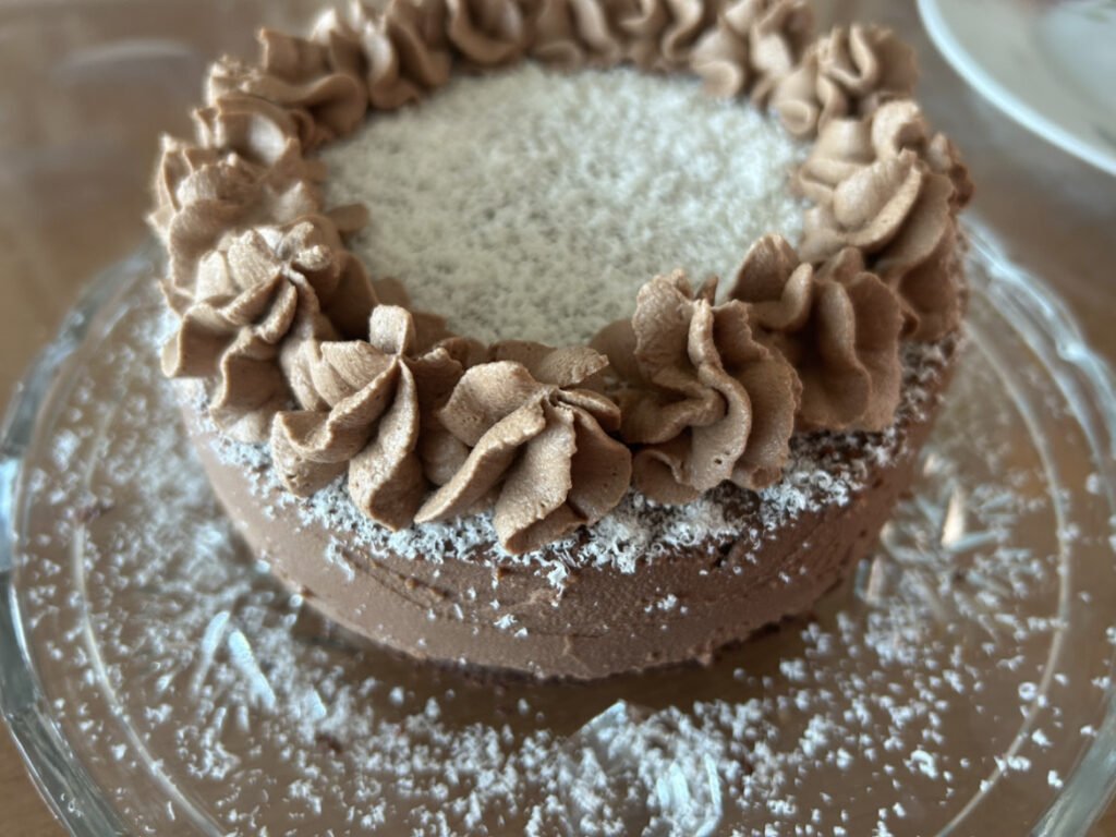 With a chocolate sponge and chocolate cream 6inch Spring form tin Sponge Ingredients 35g oil 1egg 40g SR flour 15g Cocoa powder 50g Sugar Cheesecake Ingredient (1) 125g Dark choc …