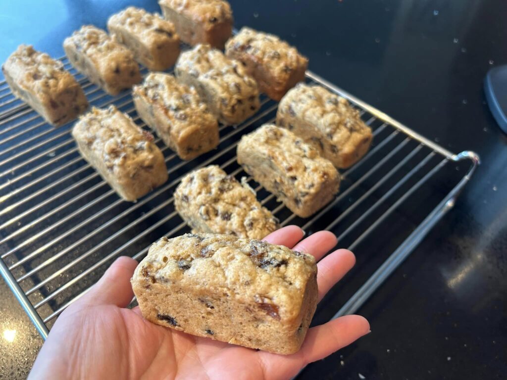 Loving these individual mini loaf cakes. I used a traditional oven, 160 Fan for 15 mins. Lots of sugar which is why I don’t make this often but it seems …